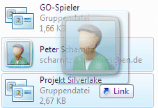 Sie können Adressen im Adressbuch aber einfach auch mit der Maus auf einen Gruppennamen ziehen und loslassen, sobald unter dem Icon des Kontakts „Link“ angezeigt wird.