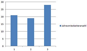 Erstellen Sie aus dem Datenbereich ein Diagramm, so stellt Excel Sie die Überschrift "Jahresmitarbeiterzahl" im Diagramm dar. Die folgende Abbildung zeigt, wie das aussehen kann:
