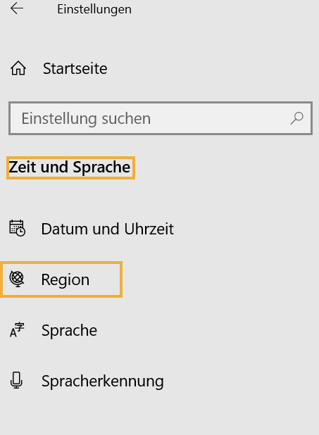 Am rechten Rand finden Sie die verwandten Einstellungen mit "Zusätzliche Datums-, Uhrzeit- und Ländereinstellungen" Im sich öffnenden Feld „Region“ wählen Sie in der Registerkarte „Format“ „weitere Einstellungen“ aus.