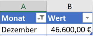 Im folgenden Beispiel sollen Eurowerte aus einem Datenbereich gefiltert werden. Statt die gesamte Tabelle anzuzeigen, soll ausschließlich der Dezemberwert ausgegeben werden.