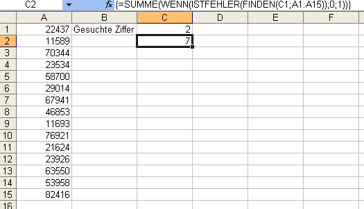 Wie Sie ermitteln, wie oft bestimmte Ziffern in einer Liste auftreten