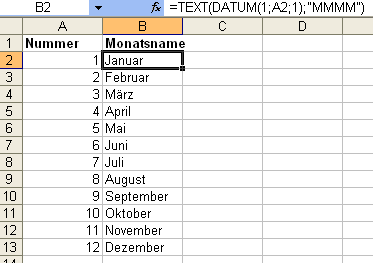 Wie Sie den Monatsnamen über eine Nummer anlegen