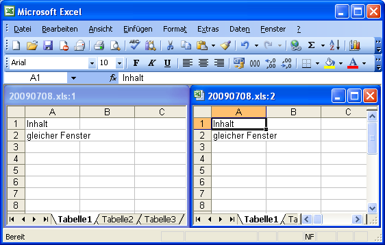 So stellen Sie eine Tabelle in zwei Fenstern dar