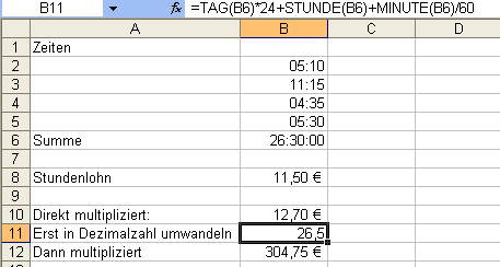 Wie Sie aus Stundenangaben Dezimalzahlen machen