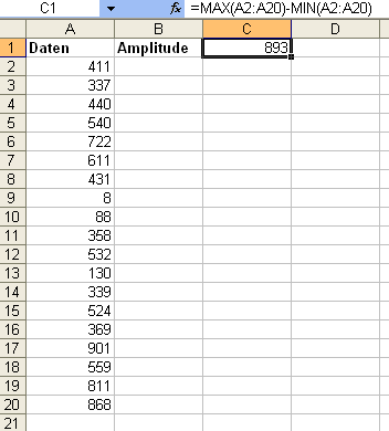 Um festzustellen, wie stark Daten schwanken, berechnen Sie die Amplitude der Werte. Um Sie das mit einer Excel-Formel zu erledigen, kombinieren Sie die Tabellenfunktionen MIN und MAX miteinander.