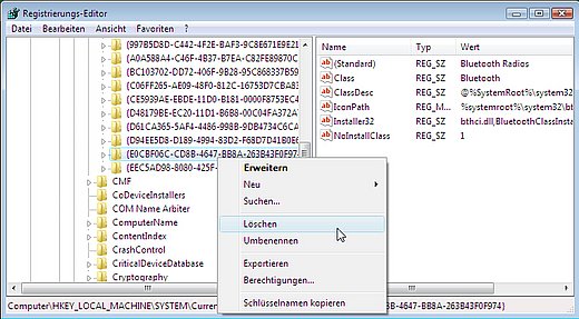 3. Klicken Sie den betreffenden Eintrag mit der rechten Maustaste an und wählen Sie "Löschen". Es gibt wahrscheinlich mehrere Einträge, die Sie löschen müssen.
