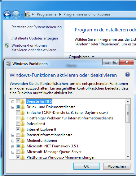 Aktivieren/Deaktivieren Sie Windows-Funktionen